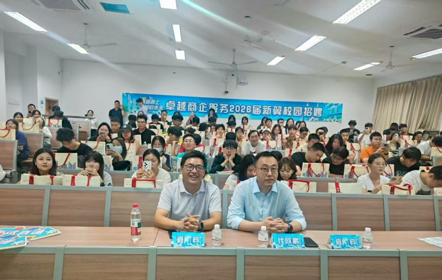 9月18日,管理学院邀请卓越商企服务在校成功举办卓越商企2026届校园招聘宣讲会,吸引了百余名毕业生参加,现场气氛热烈。