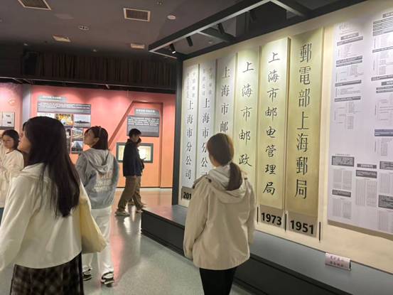 上海邮政博物馆以传承邮政文化、展现行业发展为核心,馆藏涵盖邮政历史文物、物流技术设备、通信网络模型等丰富展品,是展现我国邮政物流行业发展的重要窗口。在博物馆讲解员的引导下,师生们首先走进邮政历史展区,从清代驿站铜铃、民国邮政信筒到建国初期的邮递自行车,一件件实物展品串联起邮政物流的发展变迁。物流管理专业李同学表示:课本中曾提及物流运输工具的迭代对行业效率的影响,今天看到这些实物,让我对早期物流配送模式有了更直观的认知。