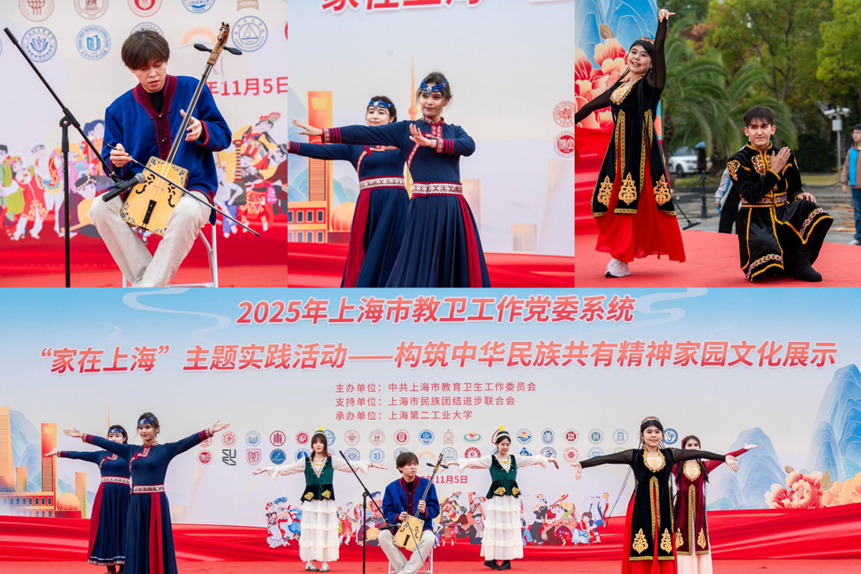 为深入学习贯彻党的二十届四中全会精神,全面落实习近平总书记关于铸牢中华民族共同体意识、做好新时代党的统一战线工作的重要指示精神,11月5日,由上海市教卫工作党委主办,上海市民族团结进步联合会支持,上海第二工业大学承办的2025年上海市教卫工作党委系统“家在上海”主题实践活动——构筑中华民族共有精神家园文化展示在上海第二工业大学举行。包括我校在内的40所高校的千余名各民族师生齐聚一堂,共同参与此次文化盛会。出席开幕式的有市教委、市民宗局等部门领导,各参展高校统战干部,以及各民族师生代表。我校党委统战部联合管理学院近32名师生参与活动。