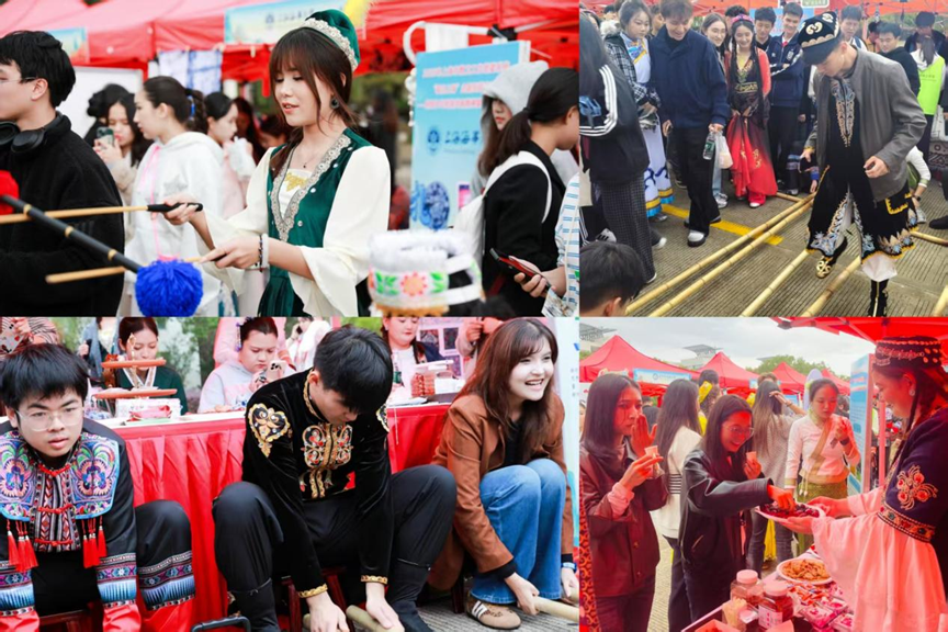 “竹竿舞”社团学生带领观众随着节奏互动跳跃,在轻松欢快的氛围中传递民族体育文化的活力,展现我校学子自信向上的青春风貌。