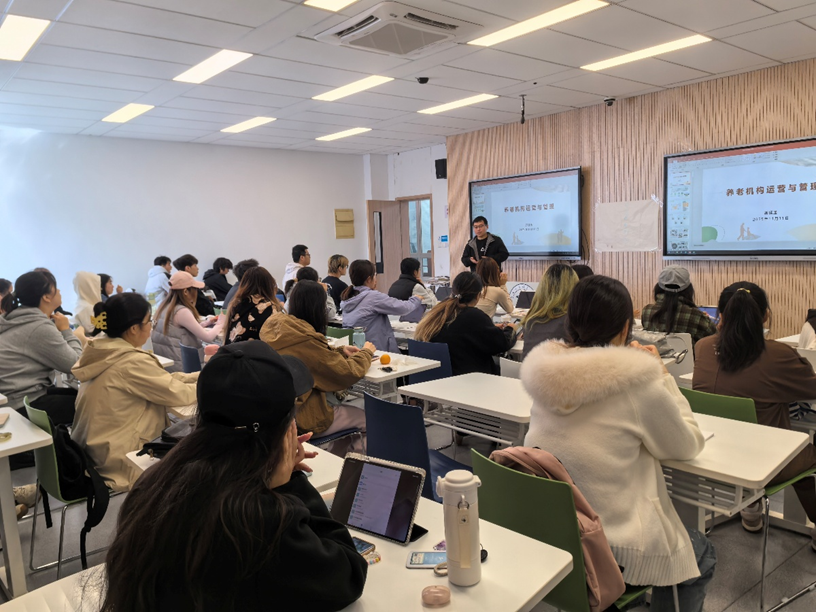 2025年11月11日,华邦美好家园养老集团市场开发和运营副总郭延通(以下简称郭老师),受邀走进《养老保障》课堂,以《养老机构运营与管理》为题开展了专题讲座。