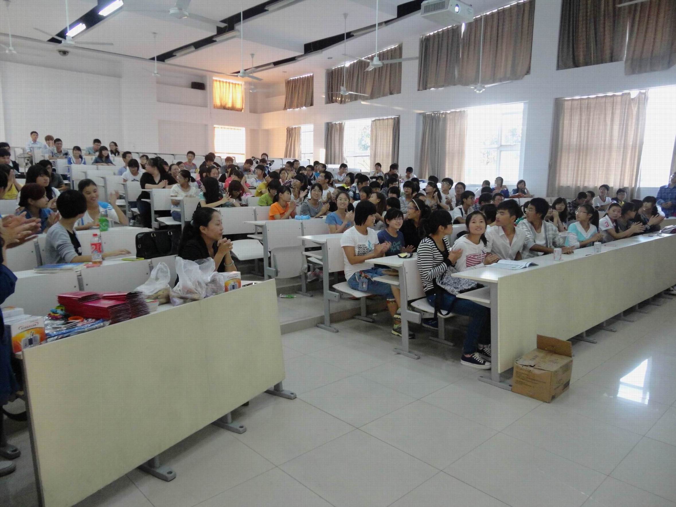 接着学生会的干事们还给每位同学分发了管理学院特有的明信片,让他们写下对远方亲人的思念之情,并由学院收齐后统一帮他们寄到家乡,寄到他们亲人的手中。此后,管理学院党委副书记虞蓉老师为同学们分发了由学院精心为同学们准备的中秋月饼和小礼品,并和坐在前排的同学们一一握手。
